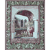 Tapestry measures 53" x 40", 100% cotton, lined, with weight bar. Reverse side has a four inch rod pocket for hanging.